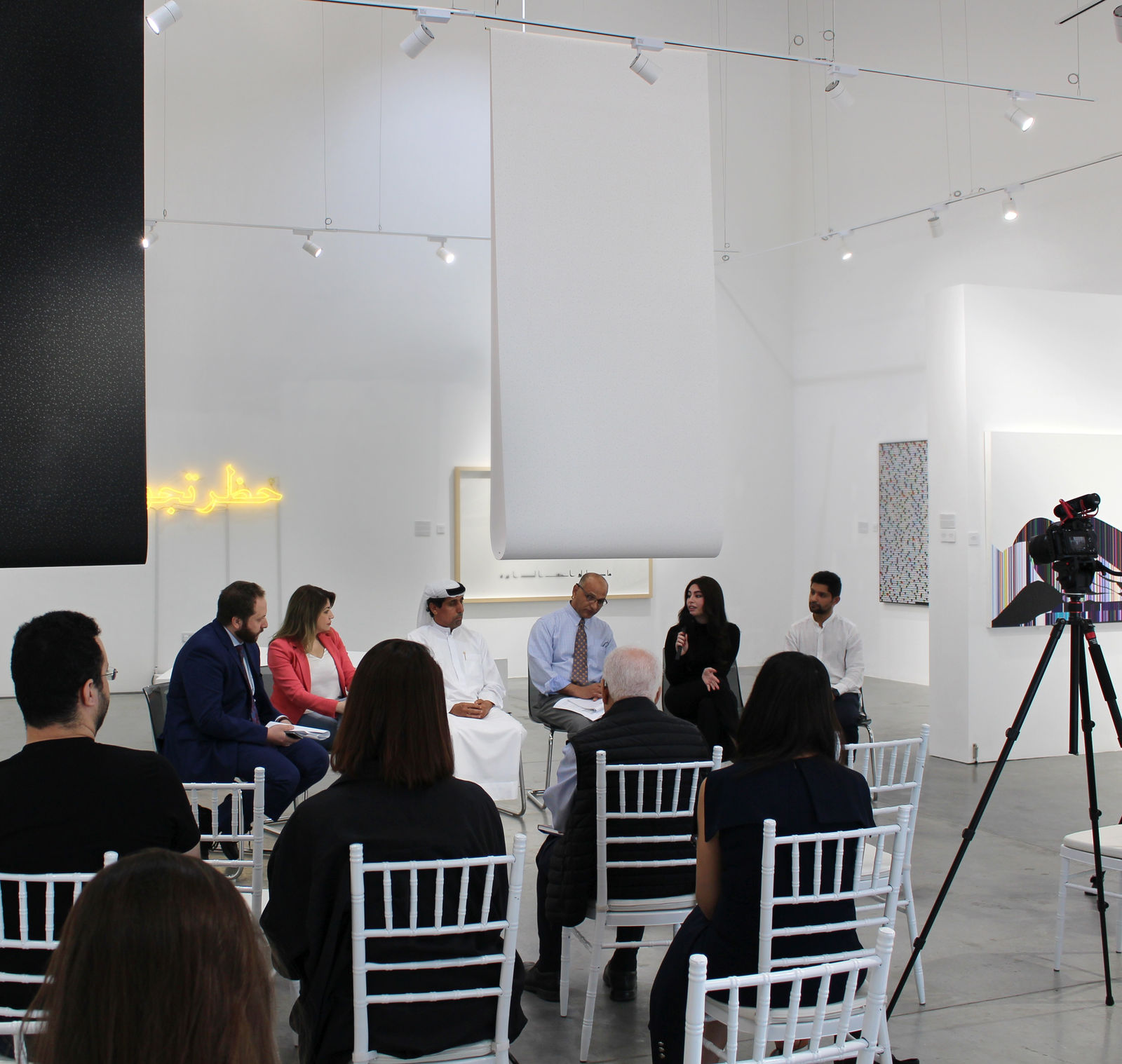 Alongside the exhibition Breaking Boundaries, Firetti Contemporary has hosted a panel discussion on the topic of the evolution of Language with a focus on Arabic Calligraphy. The panel highlights shifts in language and communication as a result of technology, globalisation and art. Through this panel, Firetti Contemporary once again pushes the importance of the gallery to act as a platform for connecting minds and concepts within a global cultural space, by intersecting ideas and themes of significance towards the forefront of the art scene.